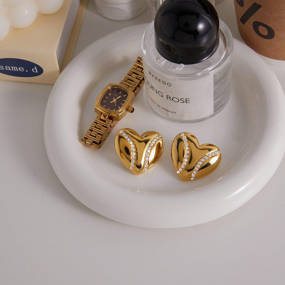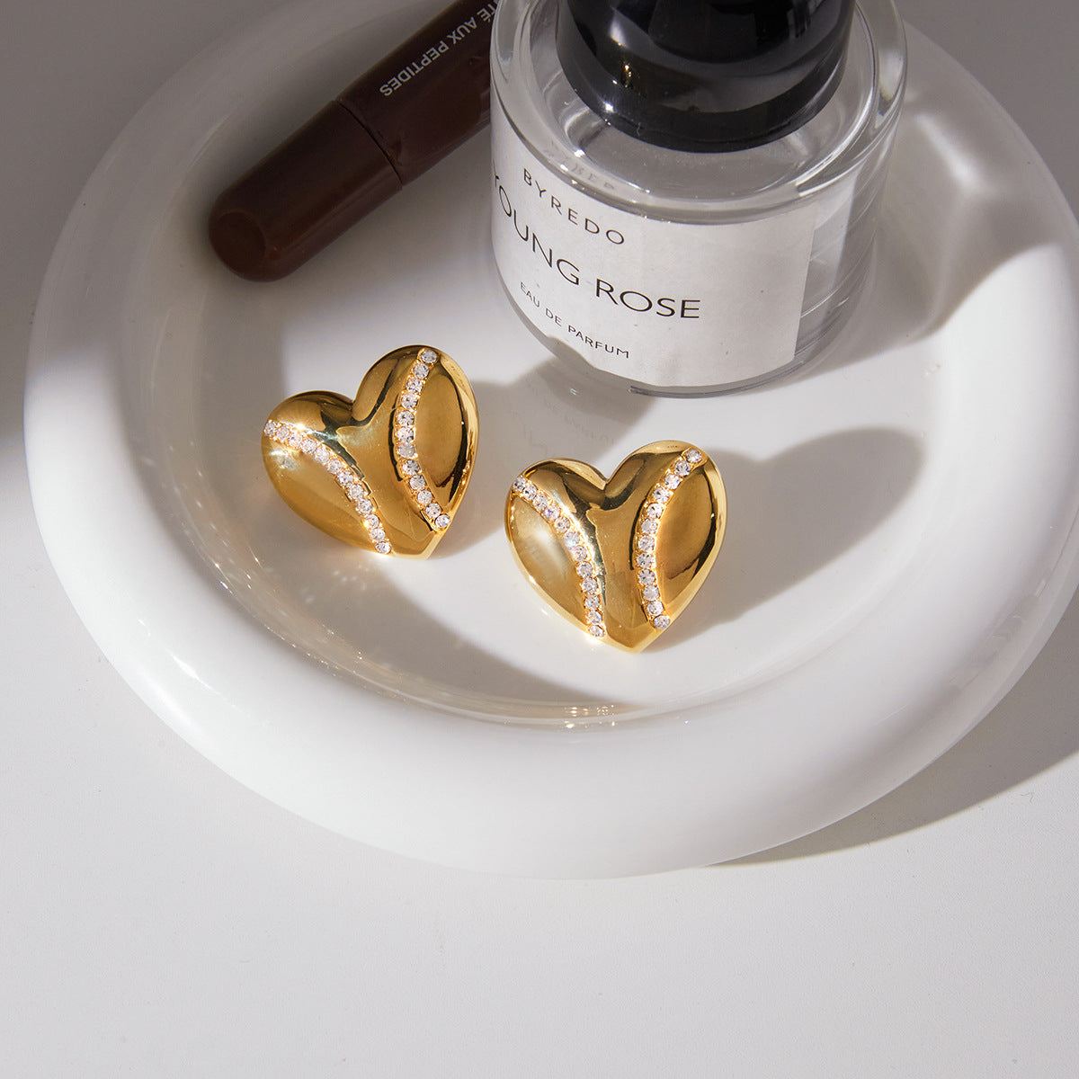 Diamond-accented Stainless Steel Heart Earrings