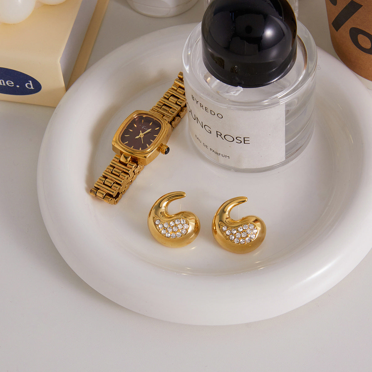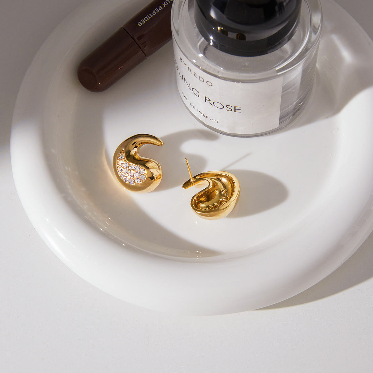 Diamond-Accented Teardrop Stainless Steel Earrings