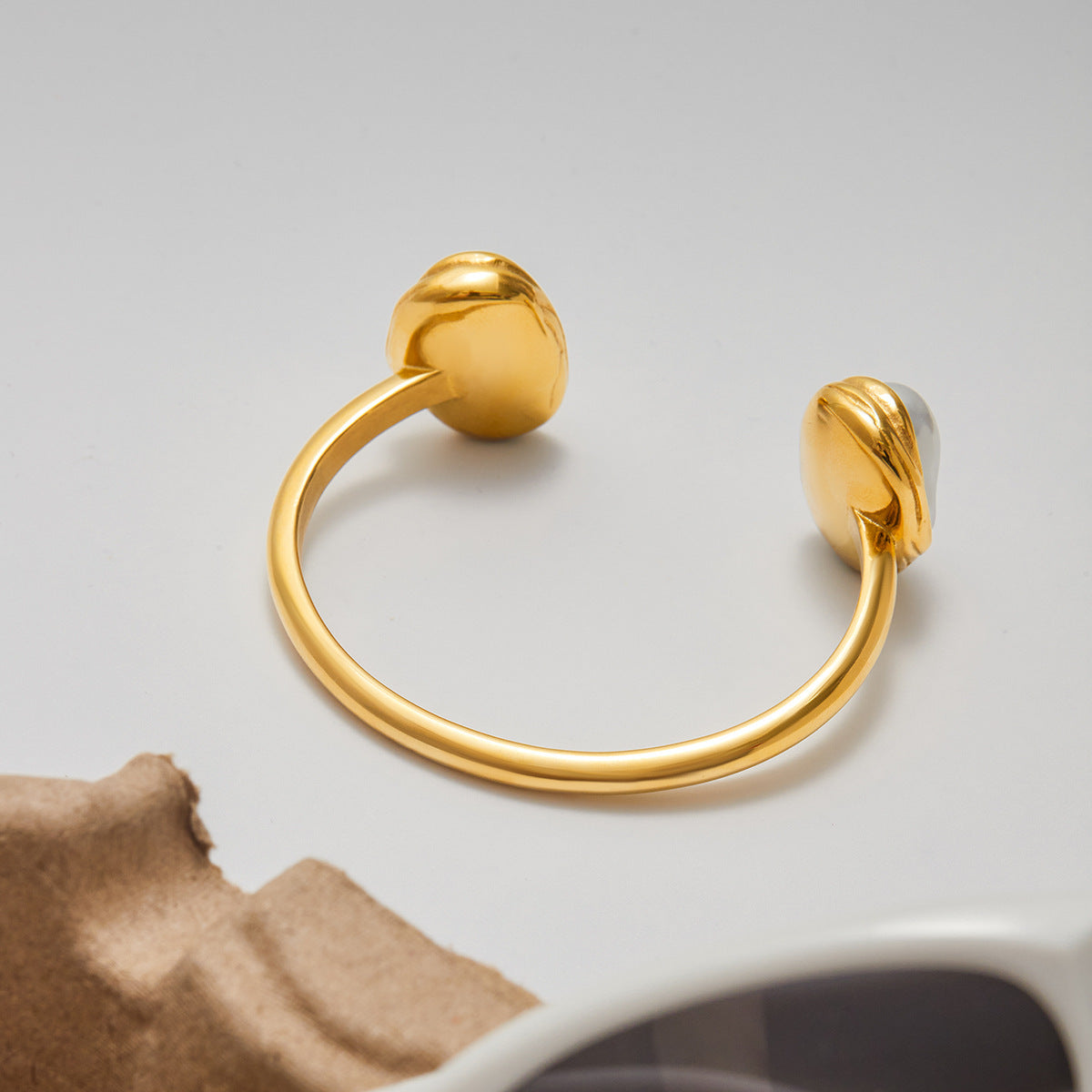 Elevate your evening and special-occasion style with this jewelry set. The set includes a wide matte gold open ring with an irregular baroque freshwater pearl, a smooth curved bangle, a chunky chain bracelet with three diamond-accent heart pendants, and a delicate chain with a textured link and small charm. Perfect for pairing with dresses or gowns, ideal for weddings, parties, and formal events.