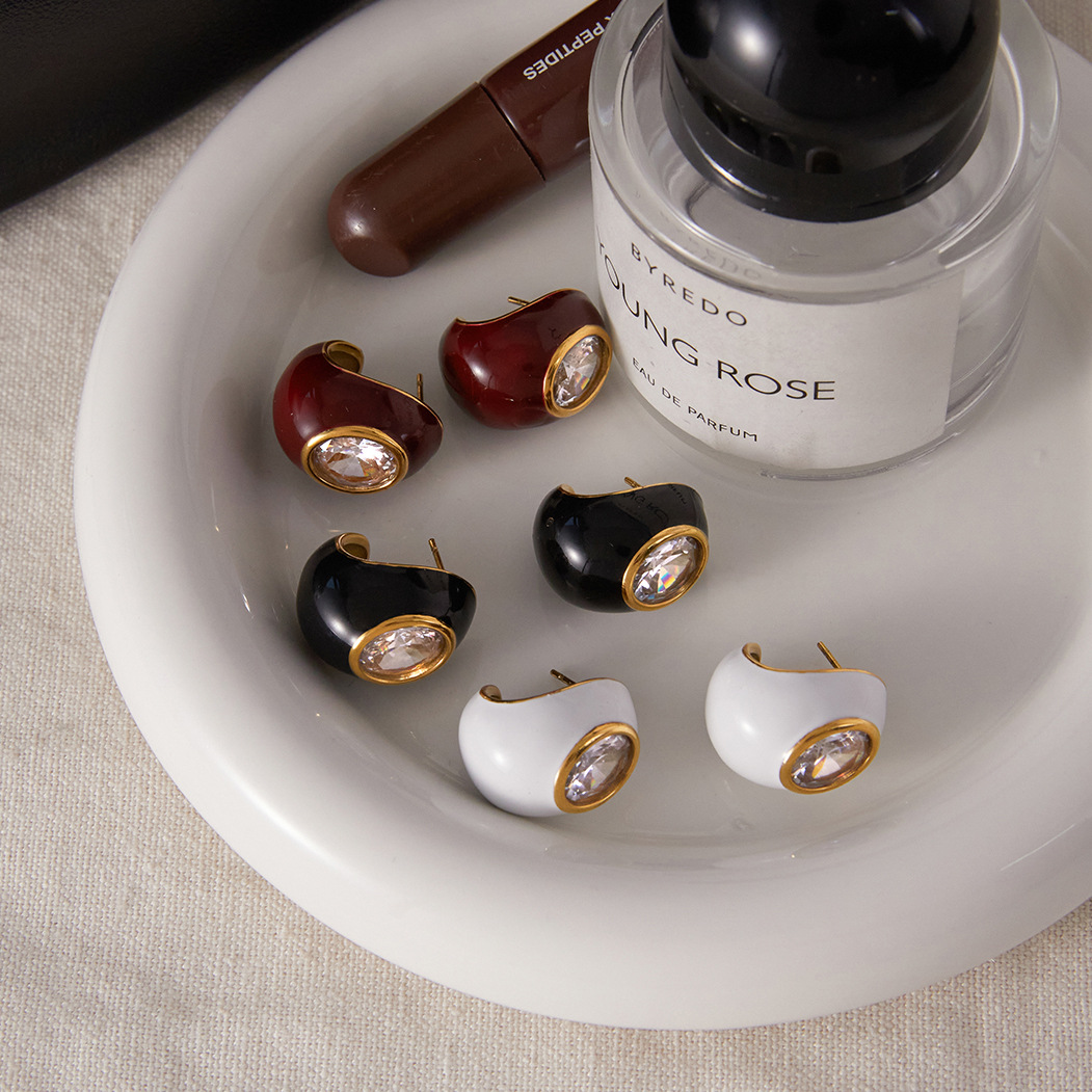 Stainless Steel Drip-Style Zircon Teardrop Earrings