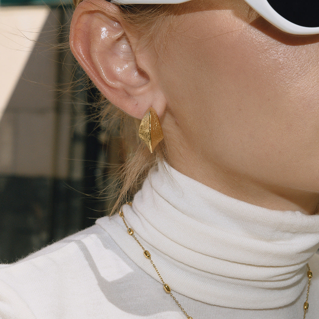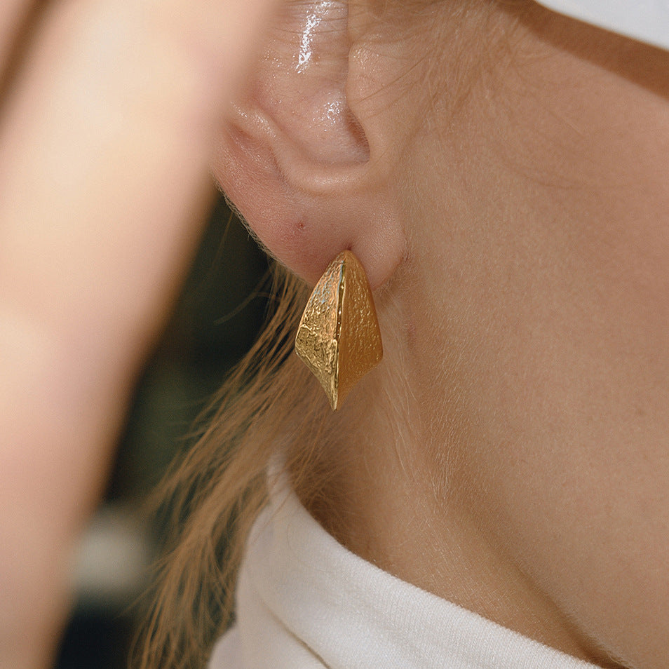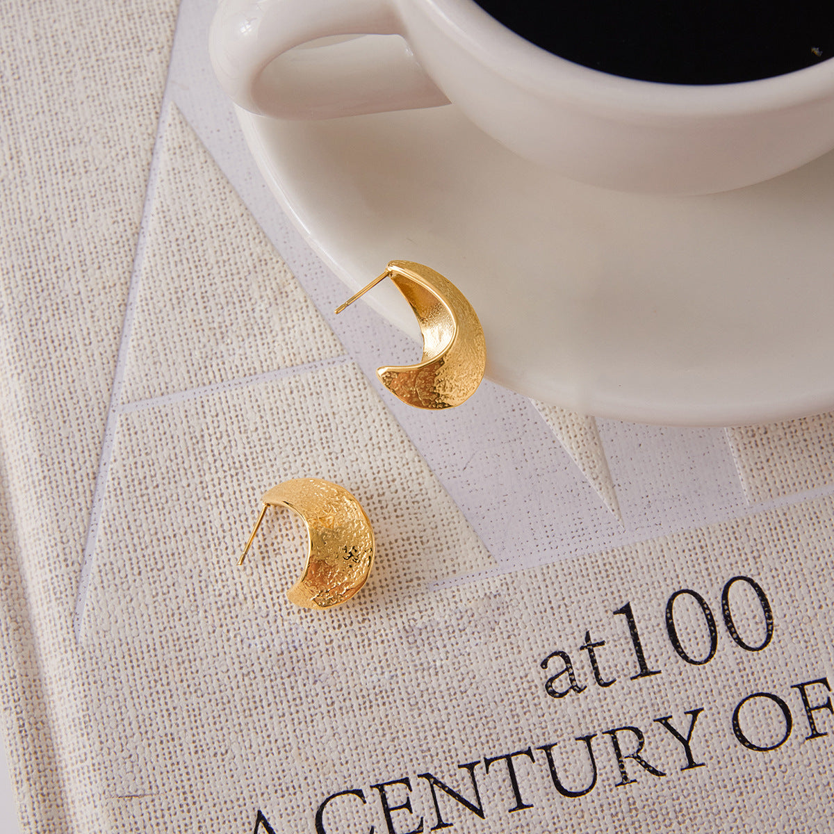Titanium Steel Hammered Textured Openwork C-Hoop Earrings