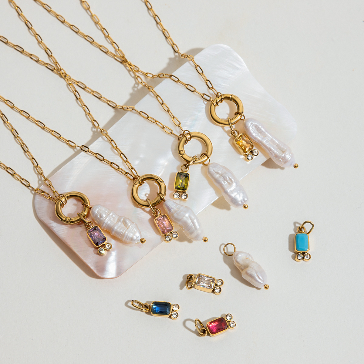 Multicolor Gem - adorned Freshwater Pearl Necklaces