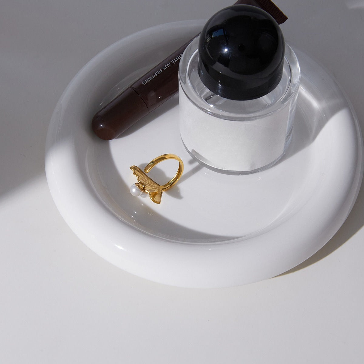 Vintage Pearl & Leaf Ring Set – Baroque Pearl, Open Band, Romantic Gold-Tone Jewelry for Women